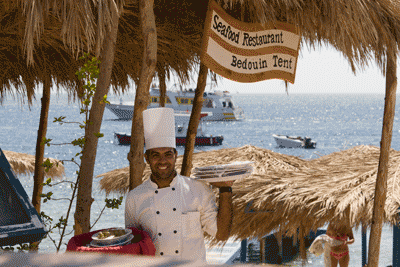 Alternatively there is the Bedouin Tent by the seafood restaurant, serving shisha and hot and cold drinks. This is the place where guests congregate at night – unless they choose to take the short journey to Naama Bay.